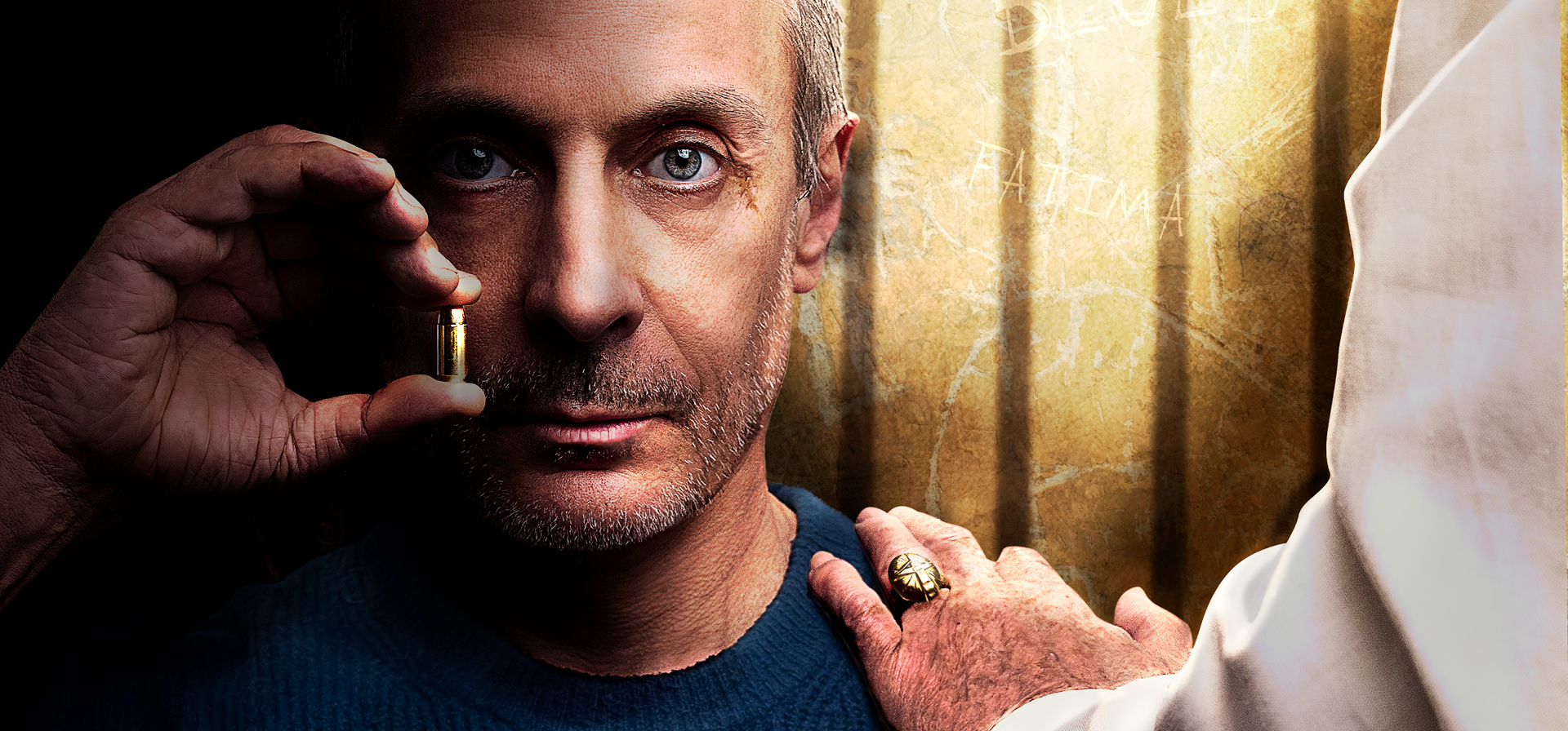 Un échange imaginé comme un moment suspendu où se confrontent foi, violence et pardon.